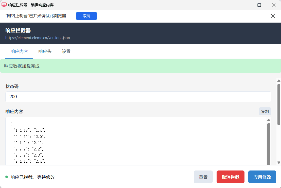 可以拦截并修改服务器返回的响应体数据, 并反馈到页面上, 可以快捷获取到想要的数据,方便调试前后端交互。